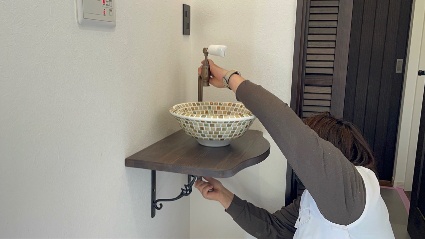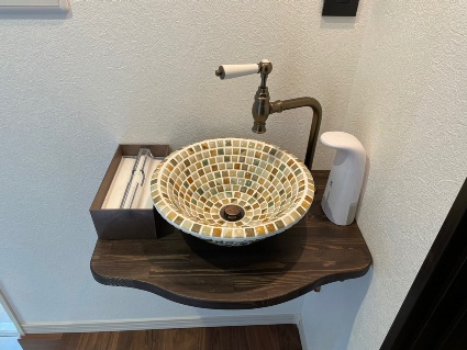 手洗い器から蛇口、手洗いボールカウンター全てがオシャレです。